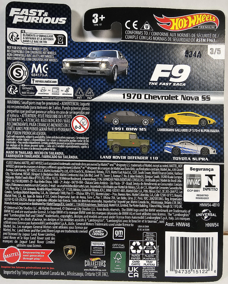 Hot Wheels Silver 1970 Chevrolet Nova SS Fast & Furious Premium 2023