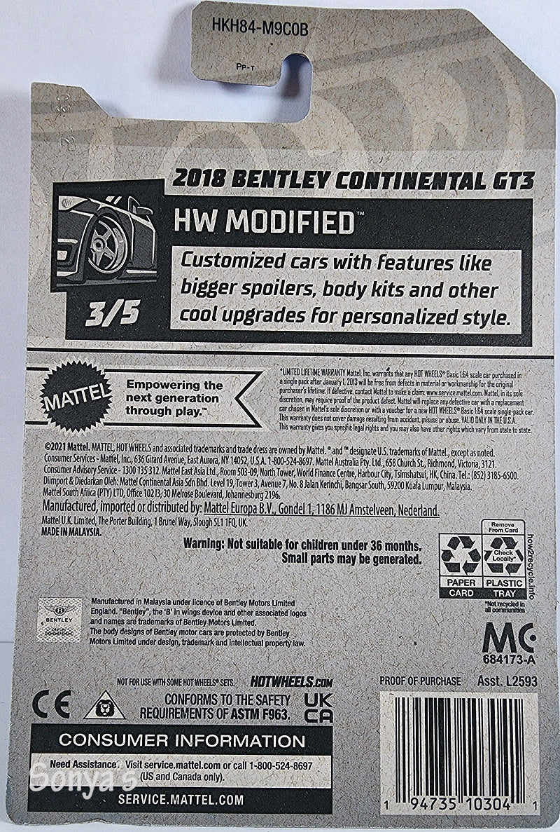Hot Wheels Green 2018 Bentley Continental GT3 2022