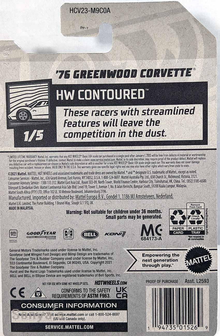 Hot Wheels Black 76 Greenwood Corvette 2022