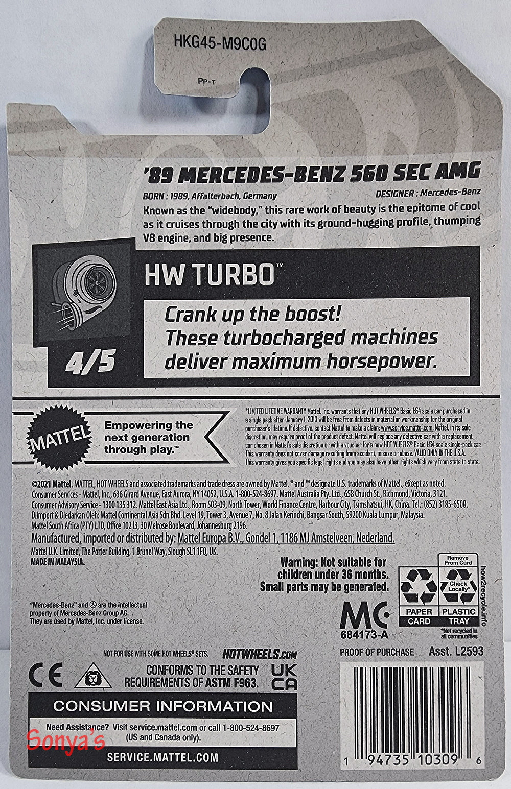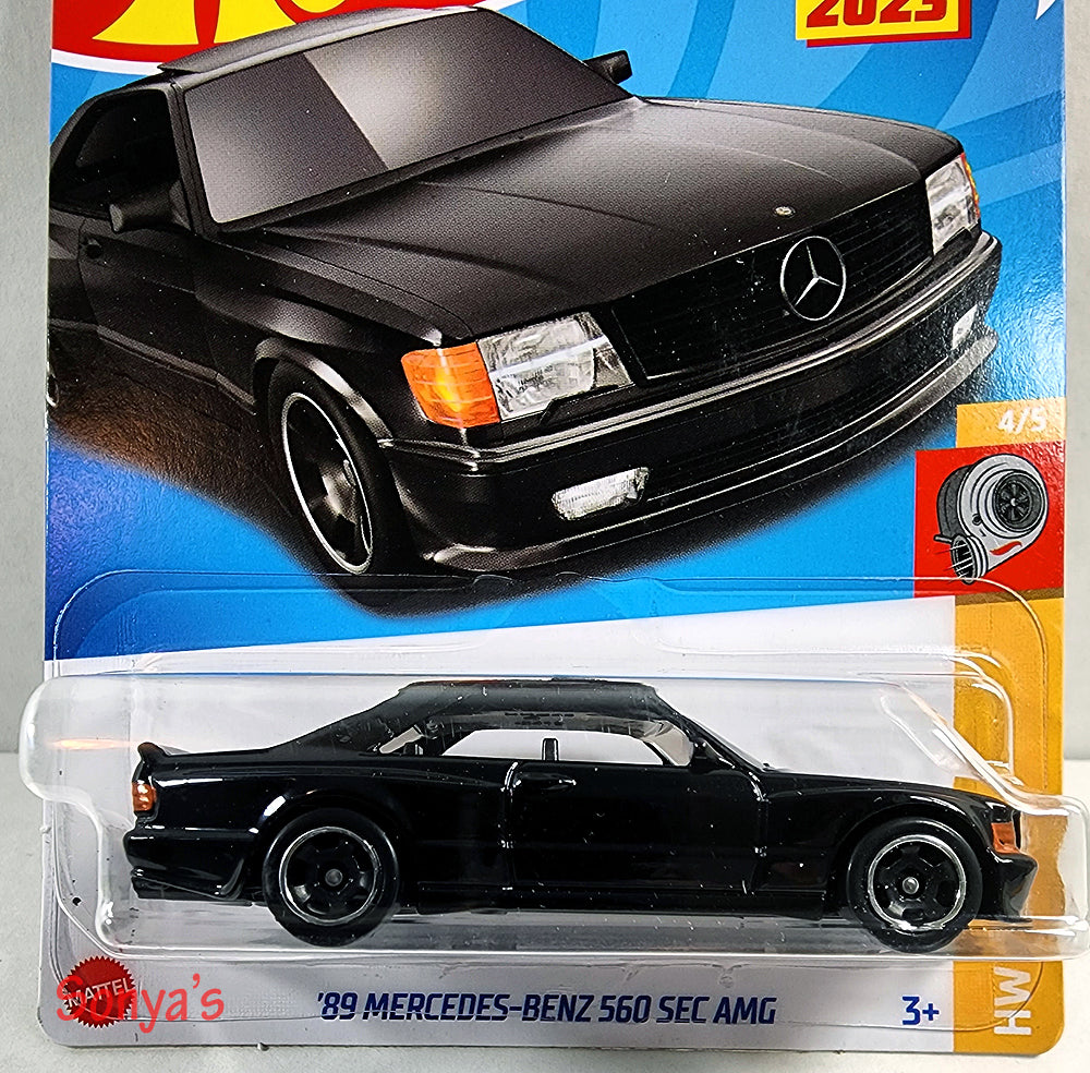 Done in pearl black with blacked out tires and slim silver rim. Painted lights front and back, riding on a black base, very nicely done. From HW Turbo, #4 in the group.