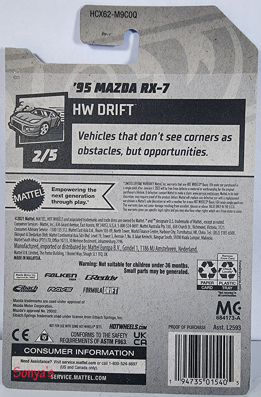 Show off your drifting skills with the Hot Wheels Blue 95 Mazda RX-7 2022. With its Drift, JDM staus, and Falken livery, this a great addition to your collection. From HW Drift, car 2 of 5.