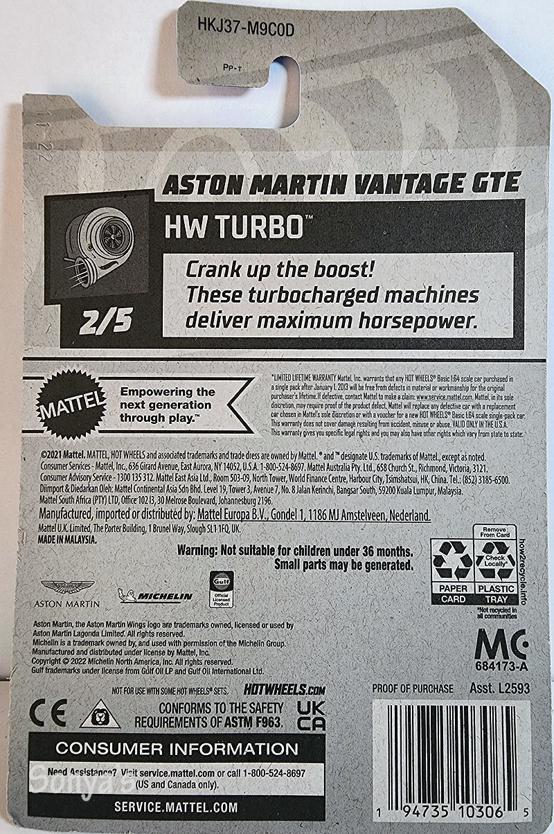 Hit the road with the Hot Wheels Gulf Aston Martin Vantage GTE 2023: an officially licensed, race car designed with thrilling features, like Gulf and Aston Martin branding. This die-cast car captures the excitement of the open road. From HW Turbo, car 2 of 5.