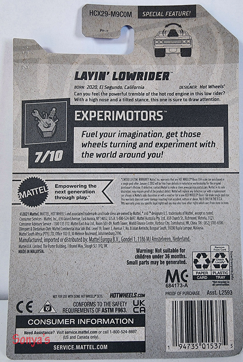 The Hot Wheels Blue Layin Lowrider 2022 is a classic and stylish car perfect for collectors. With its unique, low-sitting design and high nose, this item stands out and is sure to become a standout in any collection of Hot Wheels fans. From Experimotors, car 7 of 10.