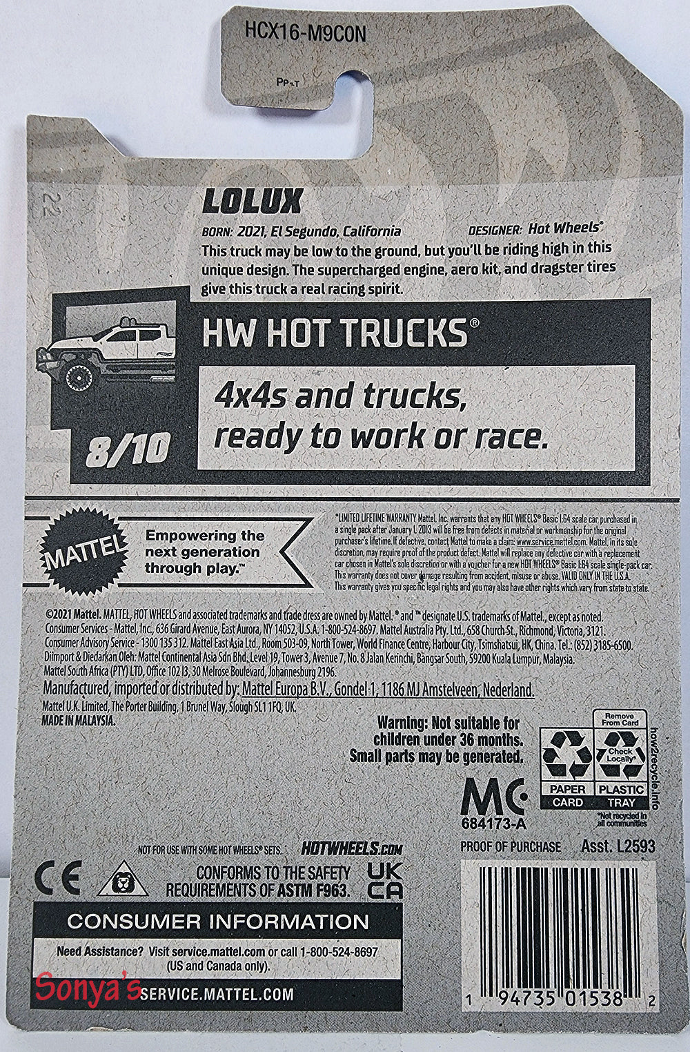 The Hot Wheels Blue Lolux 2022 is the perfect toy for car enthusiasts. Featuring a detailed tow truck concept design, this iconic Hot Wheels toy is sure to entertain for hours. An excellent addition to any toy car collection, the Hot Wheels Blue Lolux 2022 is guaranteed to be a hit. From HW Hot Trucks, #8 of 10.