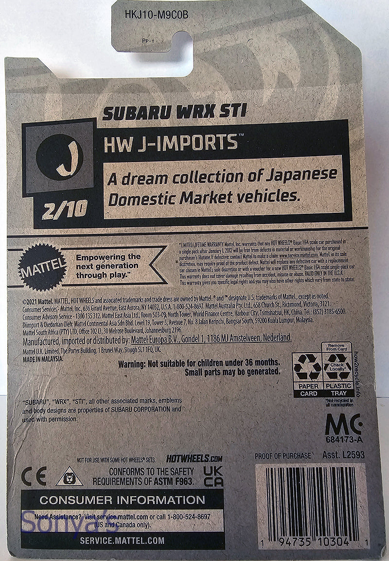 Feel the thrill of Subaru's performance in the Hot Wheels Cobalt Blue WRX STI 2022. Featuring a sleek, sporty design and all the features of a classic Subaru, this 1:64 scale die-cast car is a must-have for any JDM enthusiast. Sports a fab cobalt blue paint job and the white spoked wheels set it off. From HW J-Imports car 2 of 10.