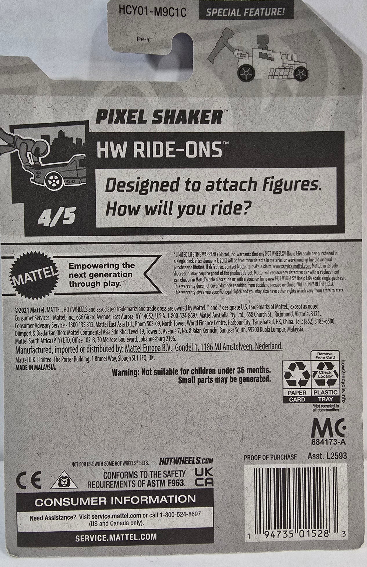 Treasure Hunt version. Symbol is on lower panel of car. Another recolor of the Pixel Shaker. In forest green with camo color stripes, large white tires and silver base. From HW Ride-Ons, car 4 of 5 in the group. Has a special features where you can place a rider.