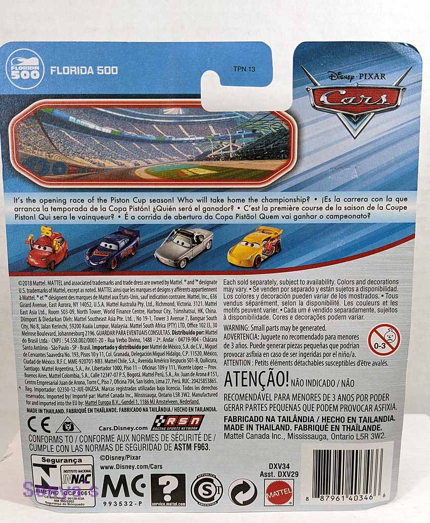 Everyone loves the Cars movies. This Jackson Storm is from the Florida 500 series and features a substantial, but sleek style. In gunmetal and blue with large racing tires and a large fin.