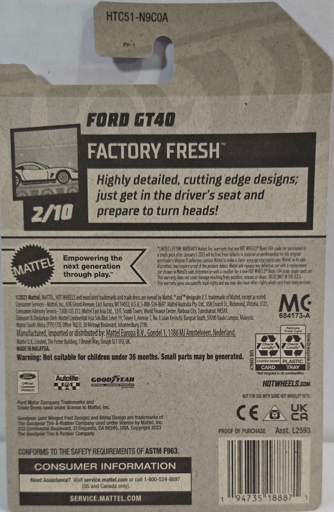 8 ball version of the GT40 done in black and white with the number 8, a stylized black hood with super dark tint. Rides on on sliver rimmed blacked out spoke tires and a black base. From Factory Fresh, car 2 of 10