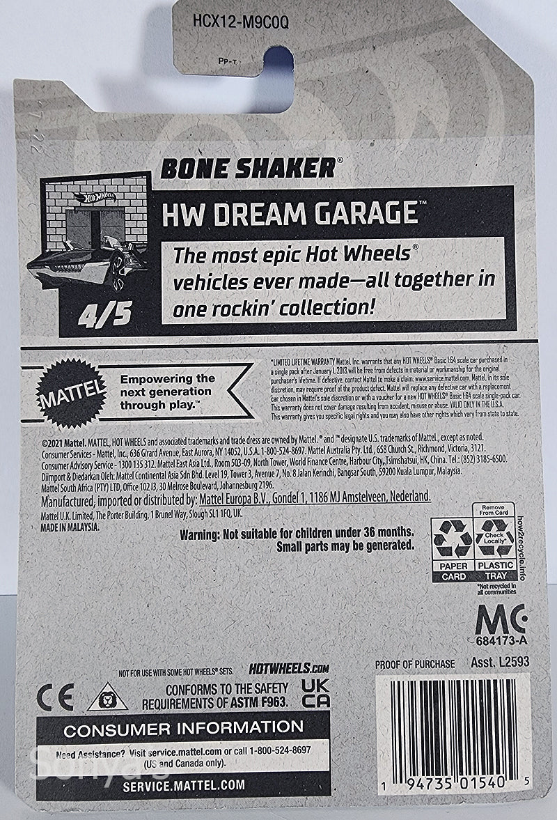 This Hot Wheels gold Bone Shaker 2022 model is perfect for collectors. Its classic bone shaker shape is instantly recognizable and comes in a sleek gold finish for an updated look. Show off your collection with this iconic model. From HW Dream Garage, car 4 of 5.