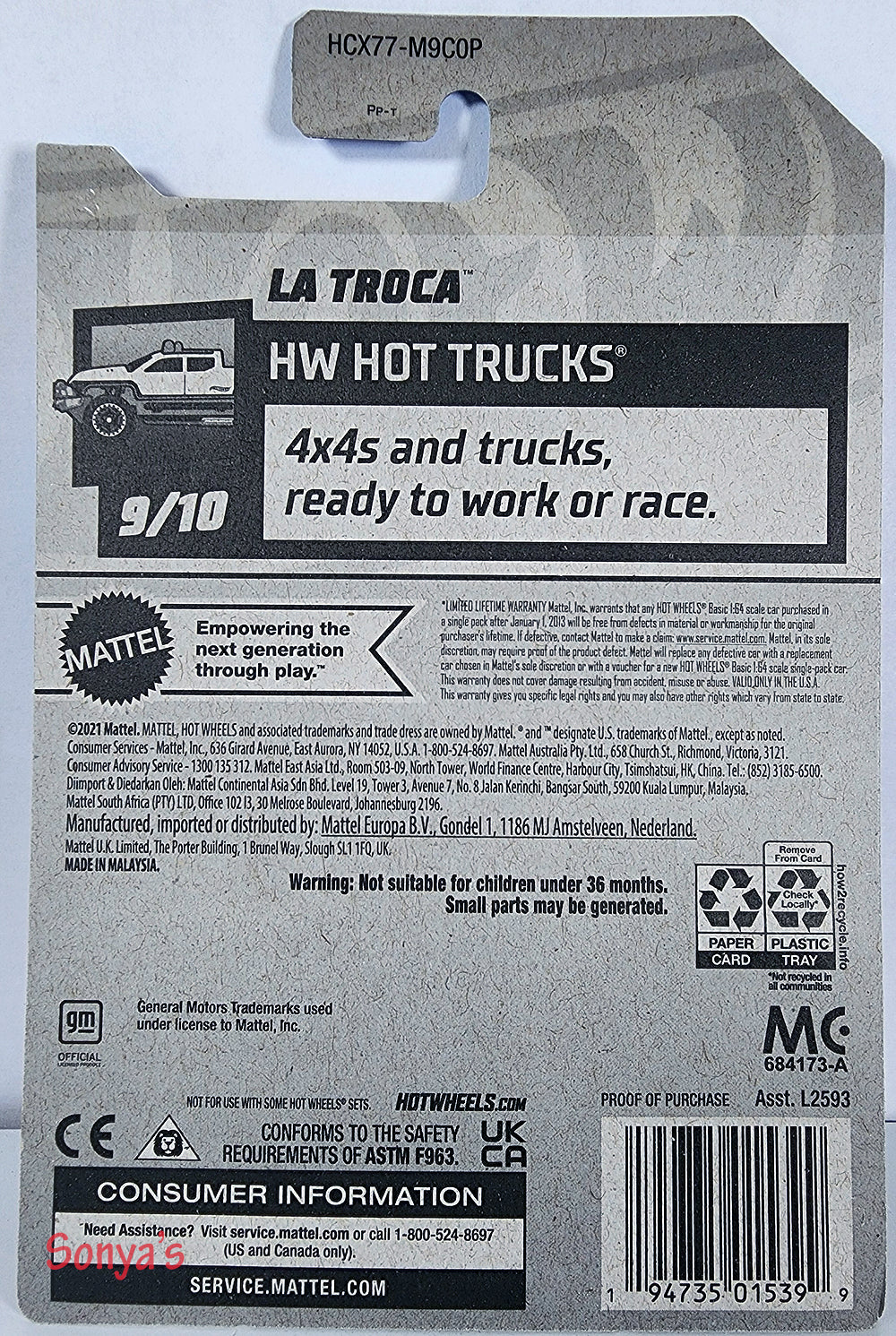 Introducing the Hot Wheels La Troca 2022! This truck is perfect for collectors, featuring a unique hot pink paint job. Its 1:64 scale makes it great for racing and display. Get yours today for a truly unique addition to any Hot Wheels collection. From HW Hot Trucks, #9 of 10.