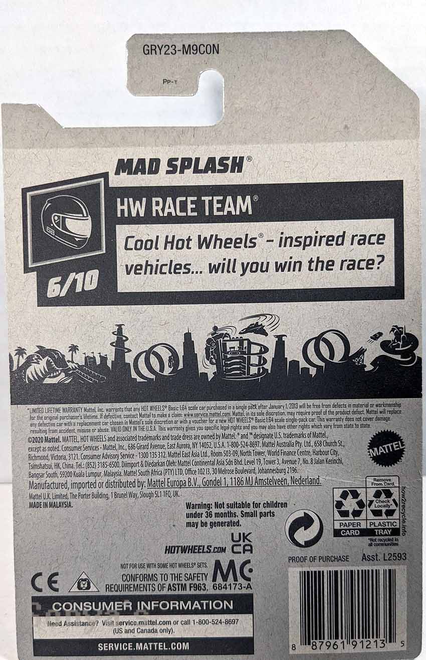 Well this is different. An interesting addition to the HW Race Team group, Mad Splash is propelled by water and has a hybrid car/boat design with a large rear mounted engine. In the classic HW livery with a clear plastic base and wheels. How's that for trolling?
