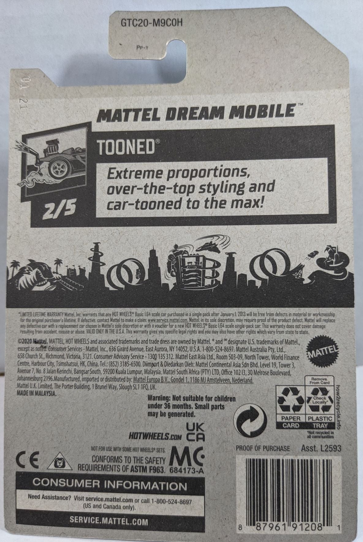 Every time I see this car I think of the Jetsons. Vintage design, but still futuristic and fresh in lime green. Has a chrome base extended into the grill and a silver overlay on the side. Red interior with a clear plastic bubble. Car 2 of 5 from Tooned.