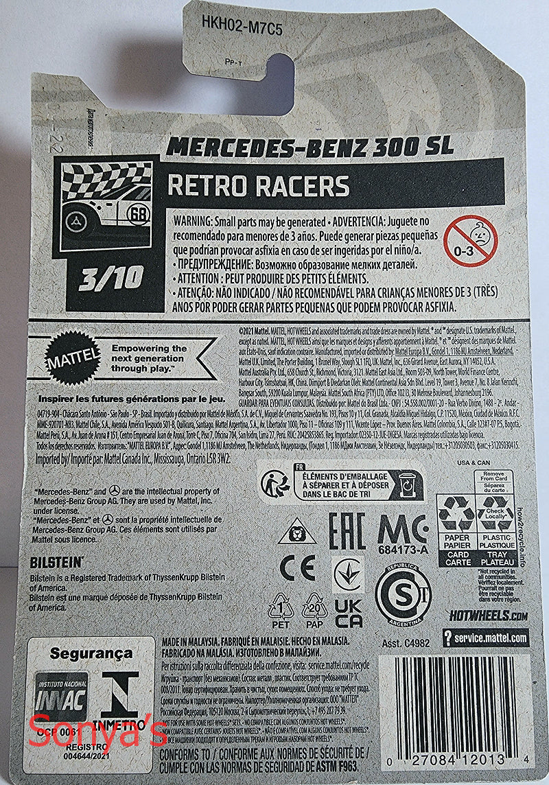 This Hot Wheels Red Mercedes-Benz 300 SL 2023 is a perfect addition for any avid collector. Rolling on a Red base, this roadster is sure to bring extra flare to any track set. With its fine detailing and unique coloring, this car is sure to stand out from the rest. Sports the number 2. From Retro Racers, car 3 of 10.