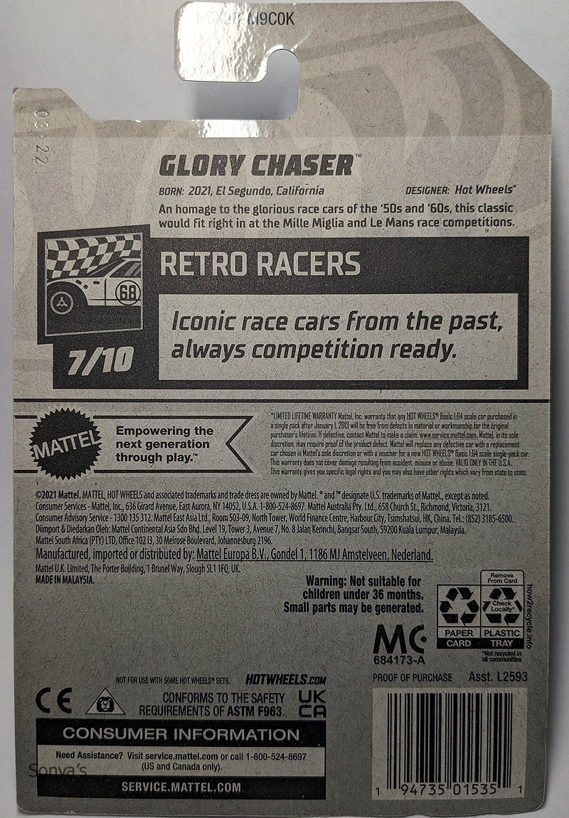 Slick looking sports car in tomato red with the number 22 on the side. Lucite like interior with silver accents. Black base with silver rimmed tires. From Retro Racers-car 7 of 10.