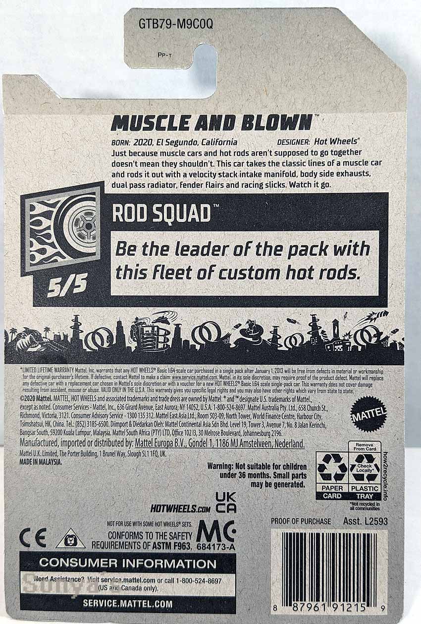 Let's usher in 2022 with this hot red version of Muscle and Blown. Oriental style livery with the 53 on the door and hood. Features oversized tires with dark gray rims and white striping on top. Has the classic lines of a muscle car with body side exhausts and more. From Rod Squad, 5 of 5.