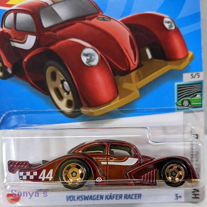 Beautiful cherry red metallic on this cool race car. Has white and gold accents with the 344 on the rear panel. Jones Race Products is on the rear spoiler and has gold wheels. Riding on a gold base. #5 of 5 from HW Contoured.
