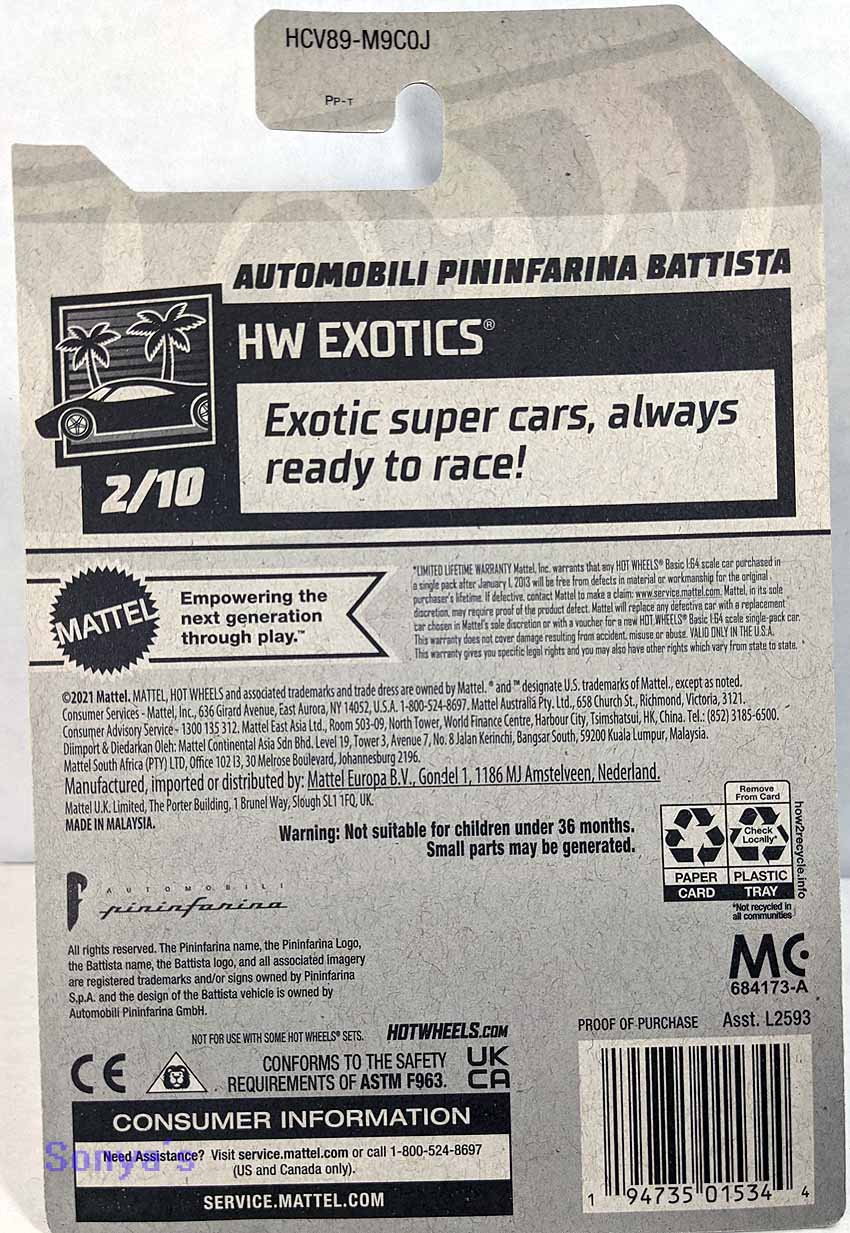 This exotic car with an even more exotic name is done in mini metallic yellow with blacked out shark tooth tires. Blacked out dome and painted lights front and rear complete the look. In real life this is a battery powered Italian hypercar with an interesting background.