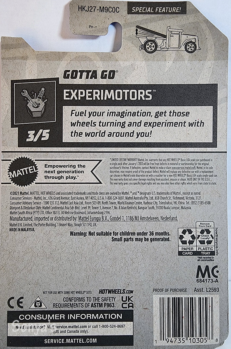 The Hot Wheels Yellow Gotta Go 2022 is an experimental car like no other. It has a unique design and bright yellow color, making it a fun and eye-catching addition to any collection. But the thing that makes it truly one-of-a-kind is its toilet-shaped body - a truly unique addition to any shelf! From Experimotors, car 3 of 5.