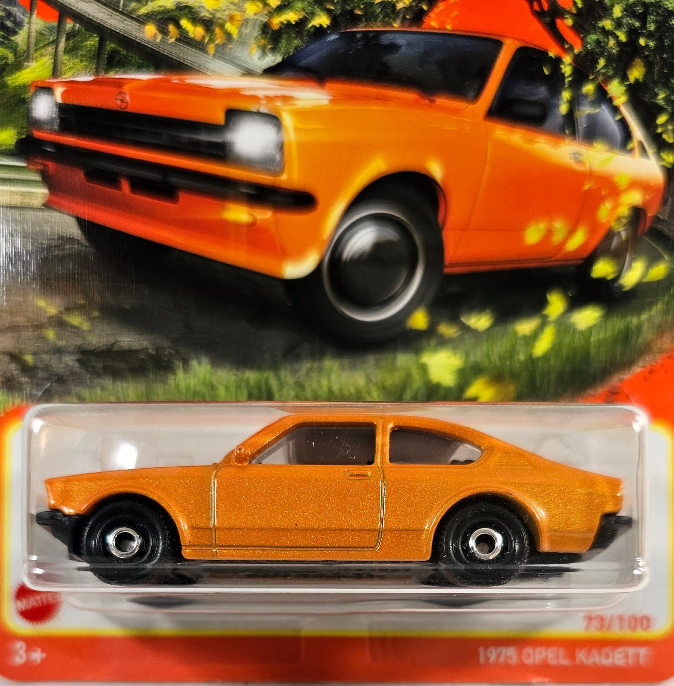 Recolor of the yellow and white Opel, this one is in orange metallic with classic hubs and smoked windows. 70 years collection from Matchbox