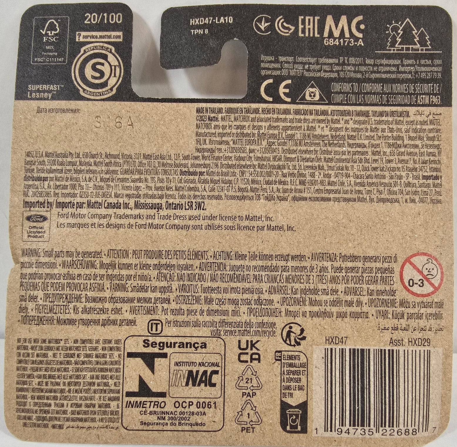 Matchbox 70 Anniversary short card truck with special white background. Done in a silver gray with orange and white striping with orange rimmed tires.