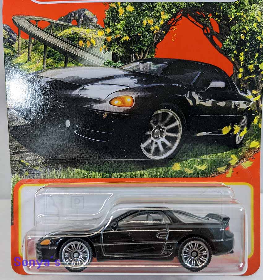 Sleek 3000GT in a classic black metallic with painted lights front and rear. Has double spoked wheels and a black base.