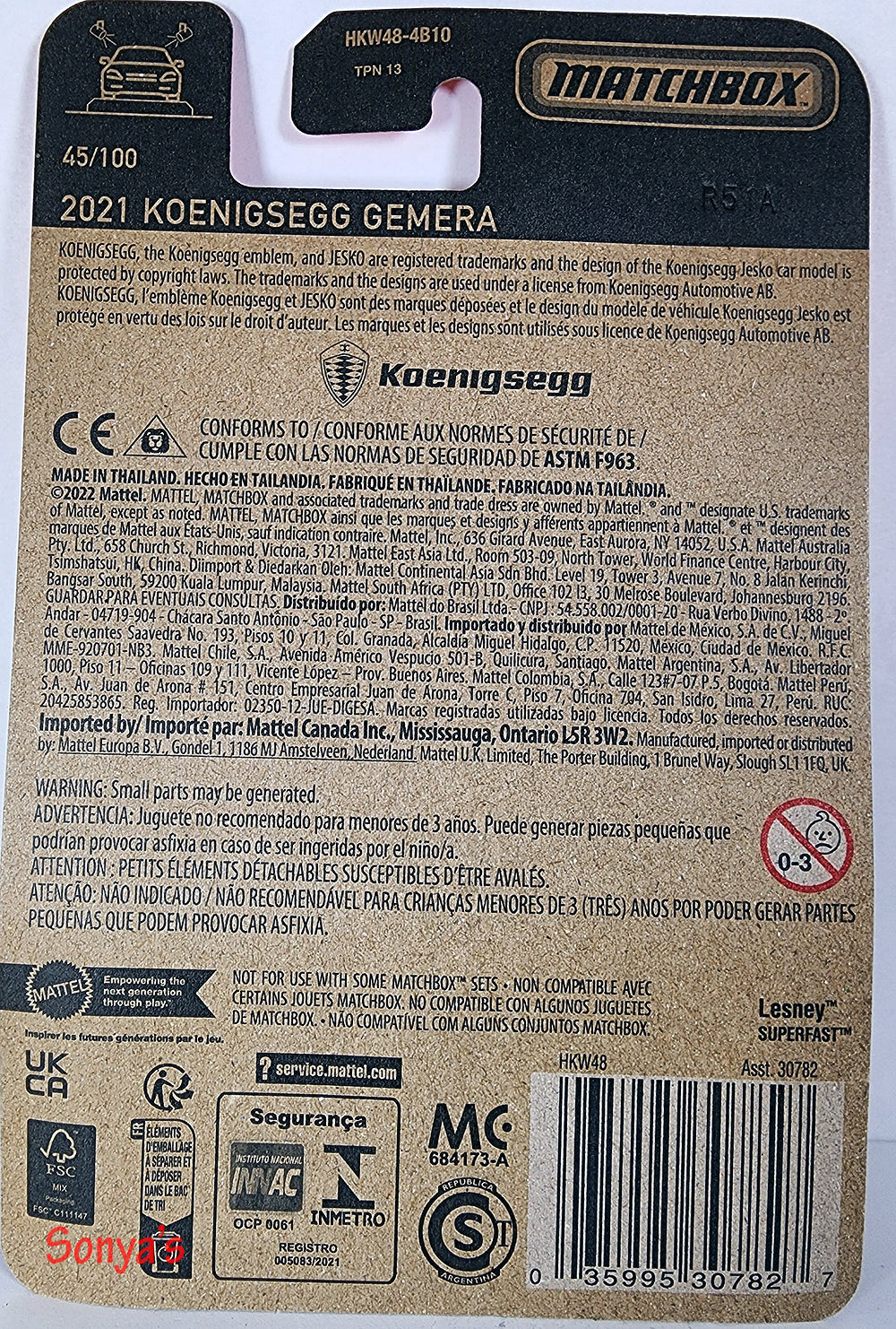 Matchbox version of the Gemera done in a dark silver gray. Features tan interior, clear windows and black base.