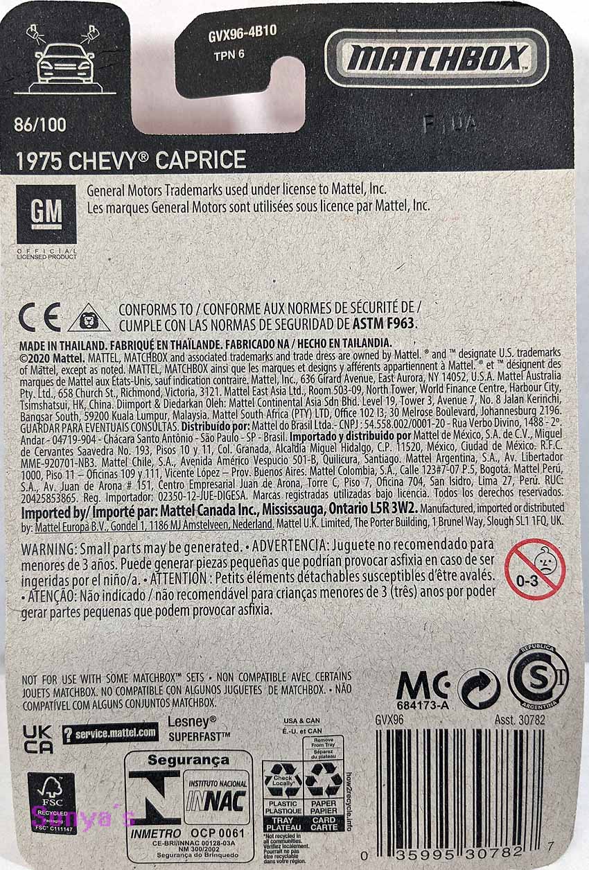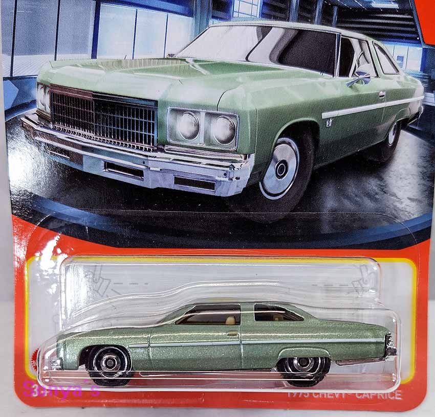 Classic Caprice from Matchbox in a Celadon green micro metallic with a side strip. Chrome base extends into bumpers and features tan interior with low profile black tires and silver hubs.