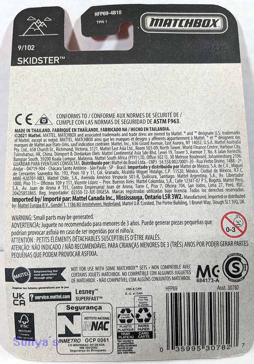 You have to admit Matchbox has the best construction vehicles and this Skidster is on of the best. Bright green metallic paint set off with a black scoop and black industrial tires with silver rims. Lots of great detailing here.