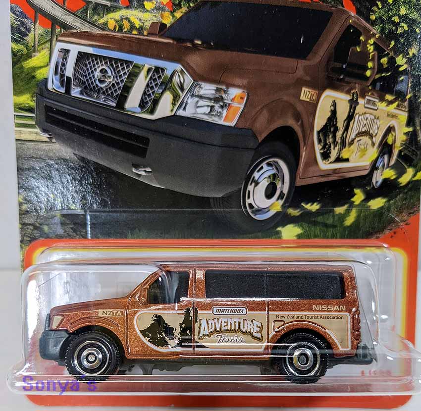 Chocolate colored forestry truck fits in with the Jurassic Park theme with brown metallic paint, the darkest windows and treaded tires. Has a gray base with a hitch.