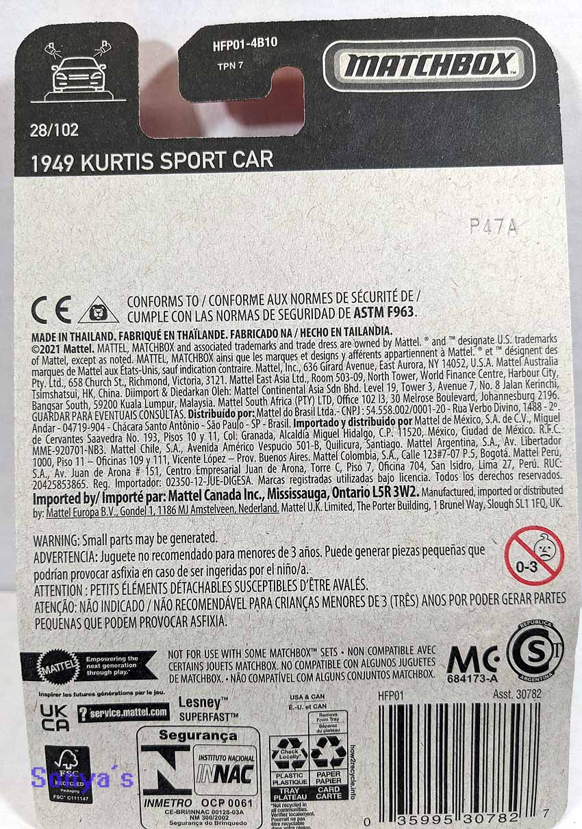 Super sleek retro sports car with side chrome banding and chrome grills. Features painted front lights, clear windshield and tan interior. On a matching red base with classic tires.