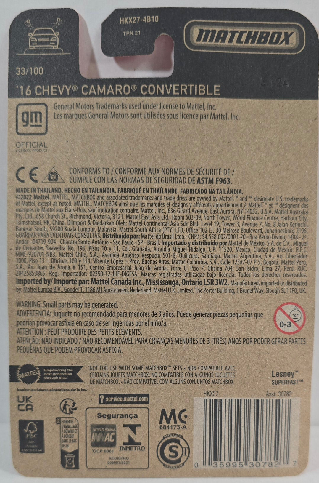 Matchbox Yellow 16 Chevy Camaro Convertible 2023