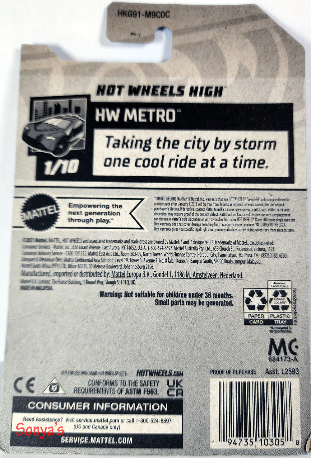 Hot Wheels High School bus perfect for track. Done in a striking purple and orange with an orange base. From HW Metro, #1 of 10.