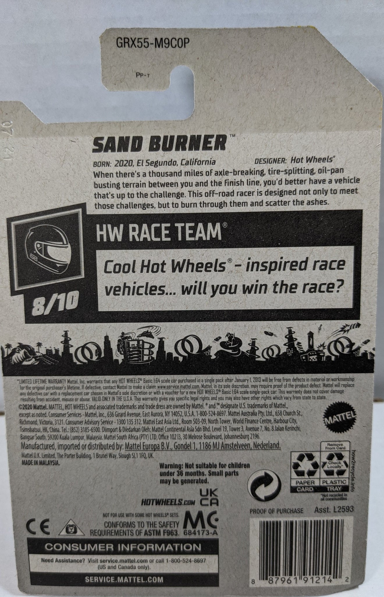It's the tire on top for me, but the livery is the classis HW Race Team and this is car 8 of 10 in this particular group. sporting All Terrain tires with a high profile and a high spoiler on the rear. Wide stripe on top and black base. Card has soft corners.
