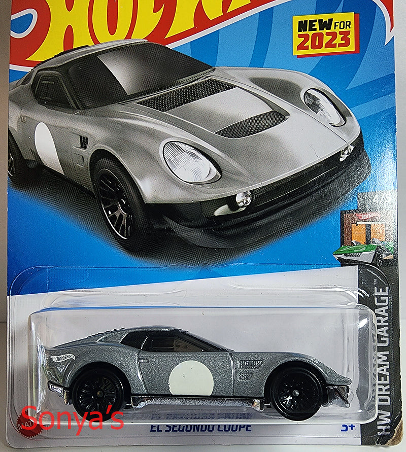 Be the envy of your collector community with the Hot Wheels Silver El Segundo Coupe 2023. This classic car is constructed from durable materials and features a sleek, California-style design. With its iconic dots and eye-catching silhouette, you'll turn heads wherever you go. Features blacked out tires and a silver base. From HW Dream Garage, car 4 of 5.