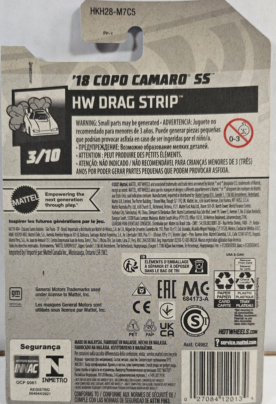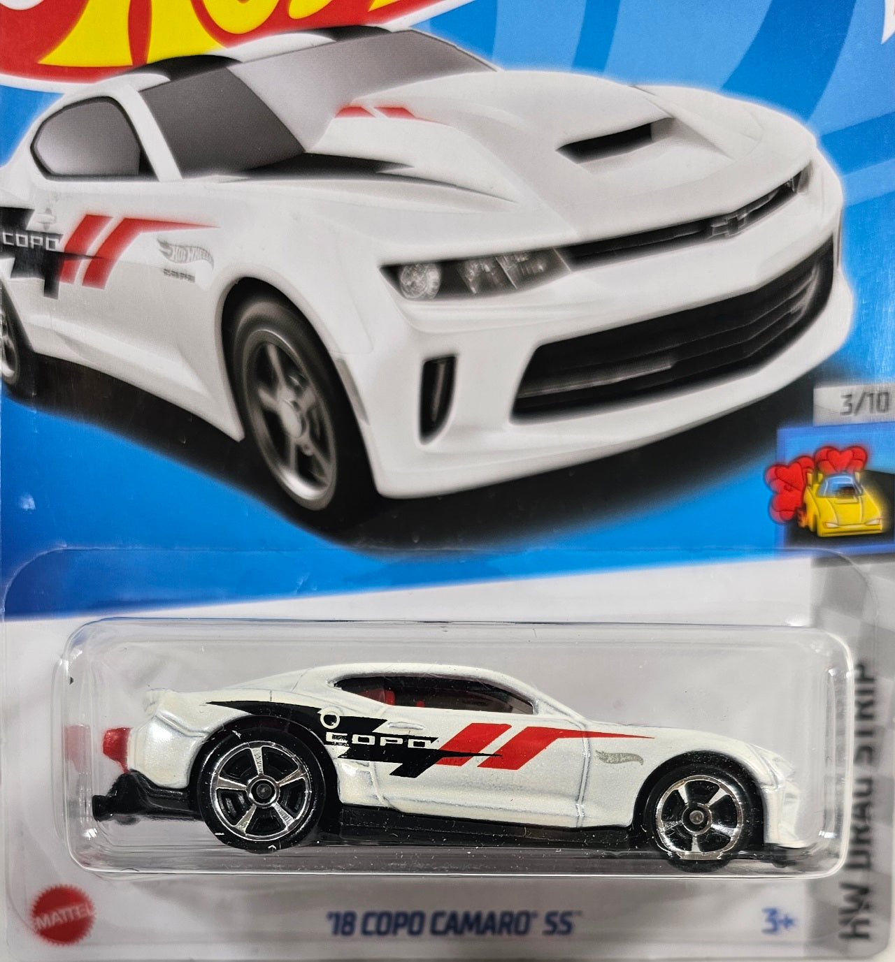 From HW Drag Strip, this pearl white Camaro features sharp black and red graphics, red interior, and thin 5 spokes and wide tires. Car 3 of 10.