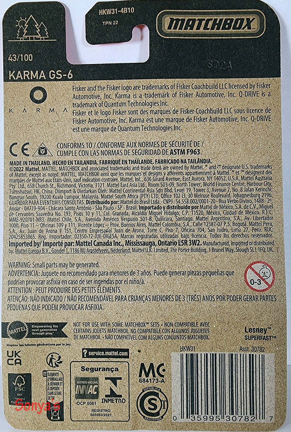 The Matchbox Cobalt Karma GS-6 2023 is an exotic matchbox designed to embody  supreme luxury with its cobalt pearl paint, classy tan interior and and tasteful dark silver spoked wheels. Clear glass windows and front lights along with painted rear lights complete this package.